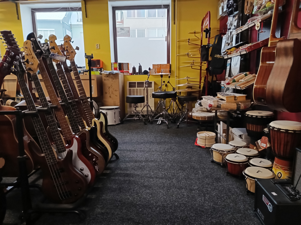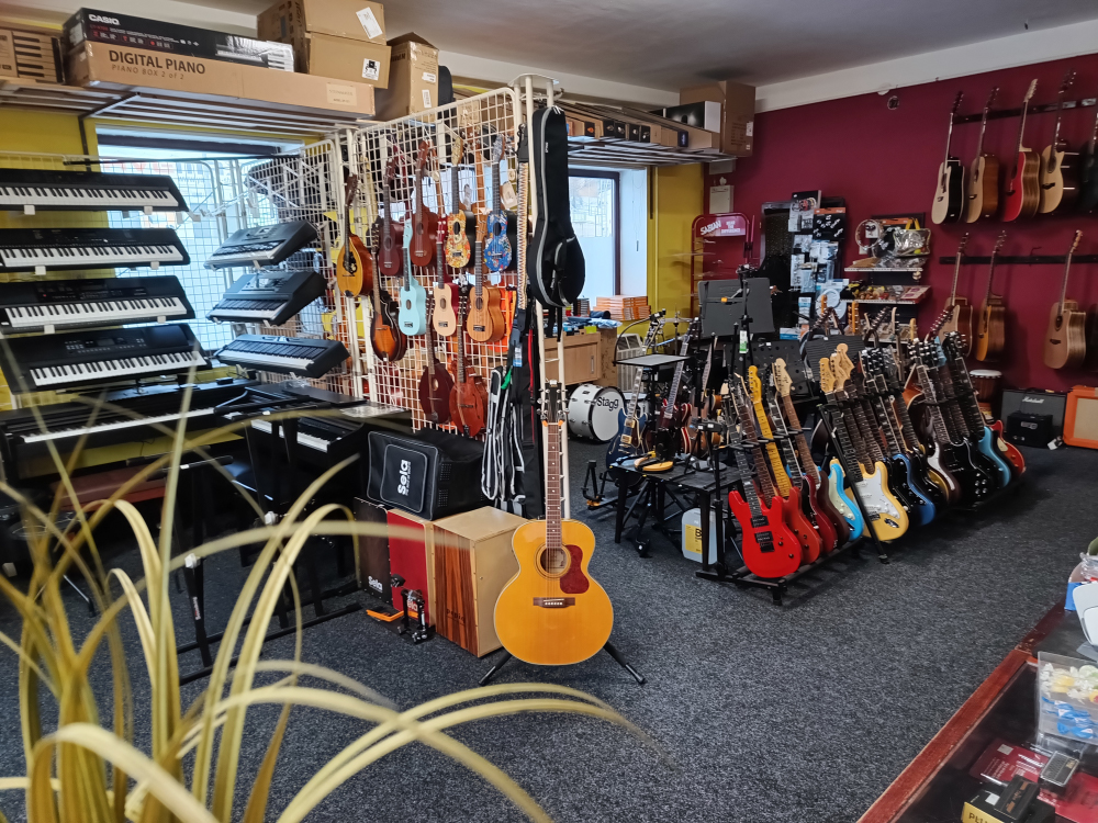 V kamenné prodejně v Třebíči nabízíme světové i regionální značky hudebních nástrojů. Přijďte si k nám vyzkoušet ten pravý nástroj právě pro Vás.